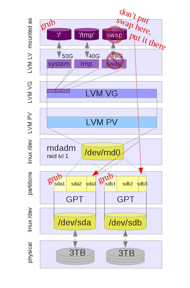 update: 26.5.2012: updated the image according to the swap comment from nbp. swap should not be in the lvm as it might degrade the performance.
