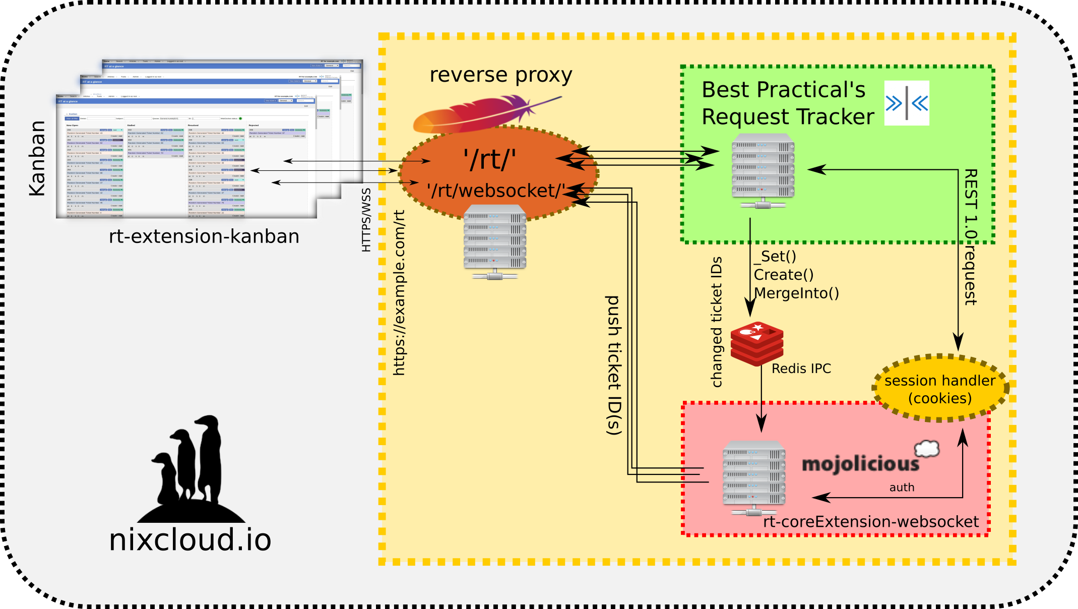WebSocket are used to update all kanban-views in realtime after a ticket has changed